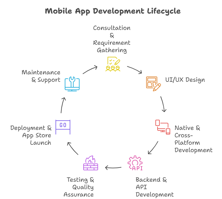 Native & Cross-Platform Development – iOS (Swift), Android (Kotlin/Java) or Flutter/React Native for cross-platform support.