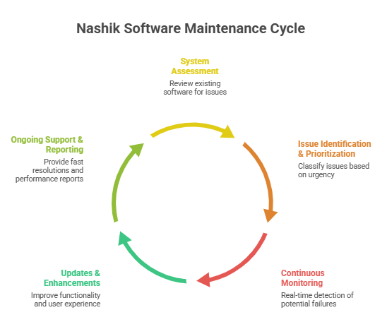 This structured approach ensures Nashik software maintenance & support services deliver consistent value over time.